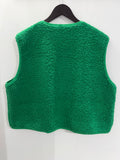 BESKRIVELSE: Lækker vest i teddy med trykknapper foran. Den har stiklommer i begge sider.
