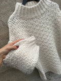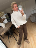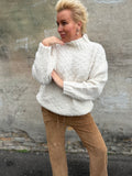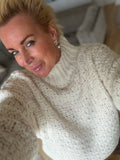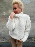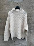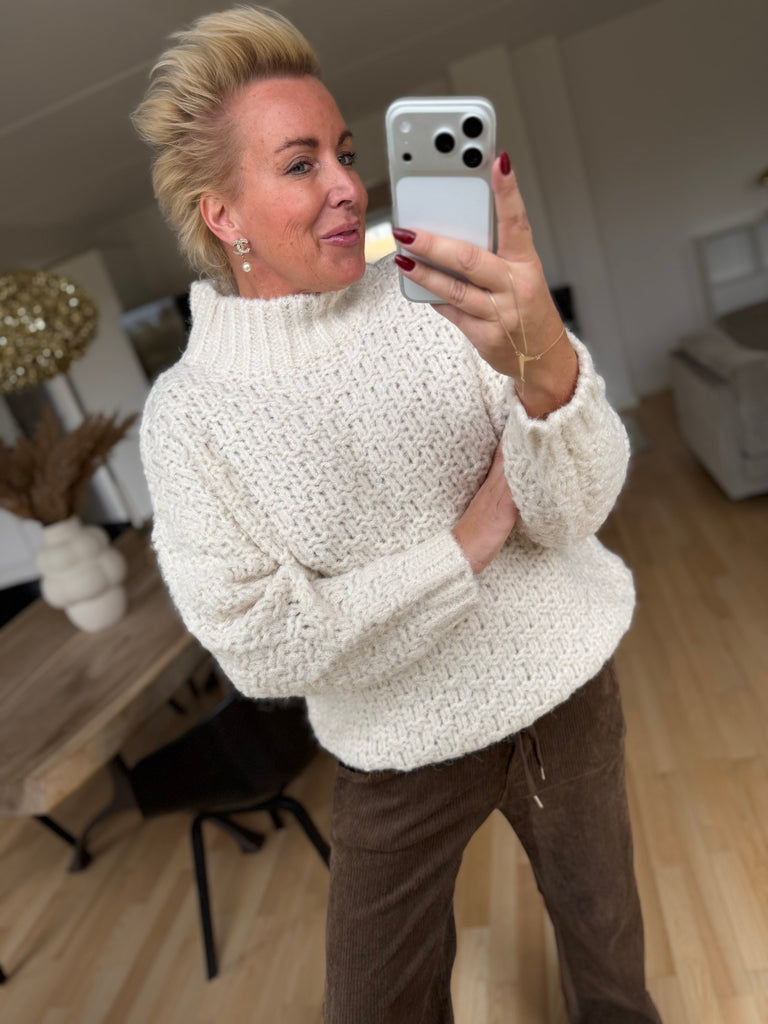BESKRIVELSE: Lækker vid strik med høj hals lange ærmer. Strikken er vaffel-strikket - super flot mønster.
