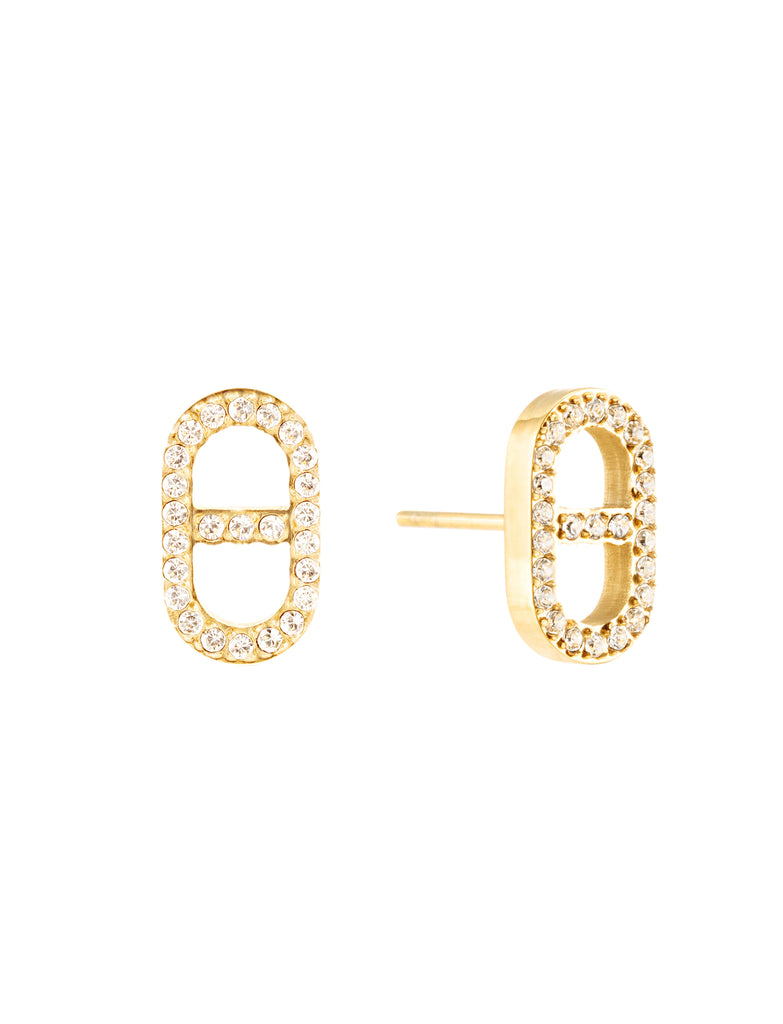 BESKRIVELSE: Et par elegante ørestikker dekoreret med funklende små krystaller, der giver et diskret, men luksuriøst shimmer. De fint indsatte krystaller fanger lyset smukt og skaber et tidløst design, der føles både sofistikeret og nemt at have på.