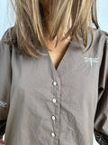 BESKRIVELSE: Fin kort bomuldsskjorte med v-hals.
