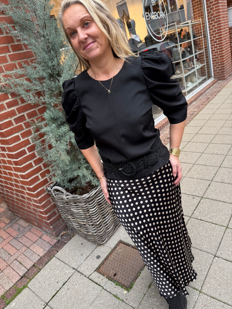 BESKRIVELSE: Super nederdel skåret på skrå. Der er elastik i taljen.