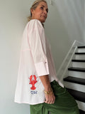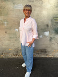 BESKRIVELSE: Lækker skjorte med lækre detaljer. Den har 7/8 lange ærmer og er længere bag til.