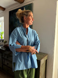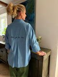 BESKRIVELSE: Lækker skjorte med lækre detaljer. Den har 7/8 lange ærmer og er længere bag til.