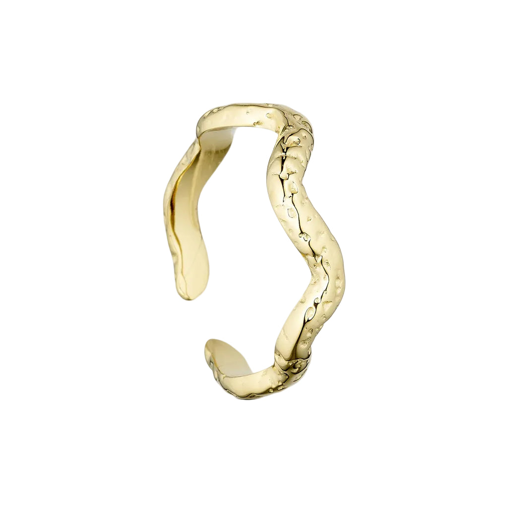 BESKRIVELSE: Denne ring har en blød, bølgende form med en let struktureret overflade, der giver smykket et levende og organisk udtryk. De fine detaljer skaber et diskret spil i lyset og gør designet interessant uden at virke markant.